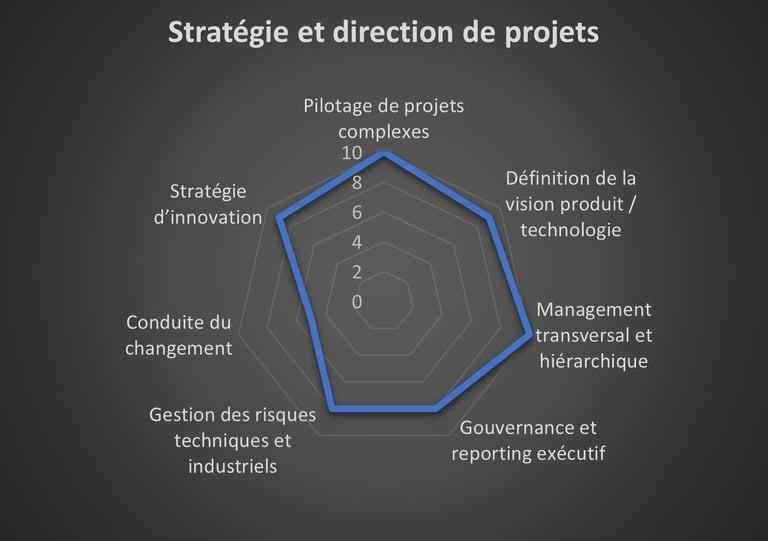Pilotage de projets complexes — cadrage, structuration, jalons, budgets, ressources, risques.