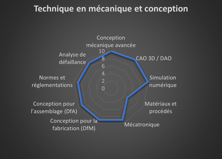 Conception pour la fabrication (DfM) — usinage, tôlerie, injection, impression 3D. Conception pour l’assemblage (DfA) — optimisation montage, réduction coûts.